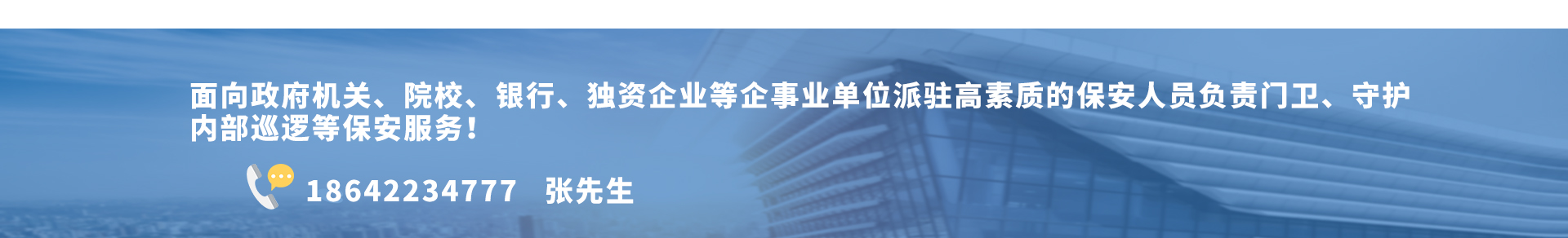 面向政府機(jī)關(guān)、院校、銀行、獨(dú)資企業(yè)等企事業(yè)單位派駐高素質(zhì)的保安人員負(fù)責(zé)門衛(wèi)、守護(hù)、內(nèi)部巡邏等保安服務(wù)!